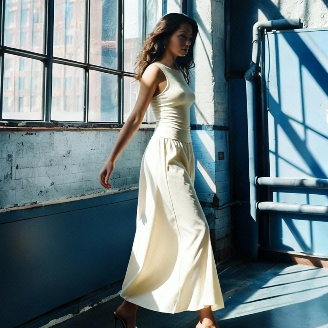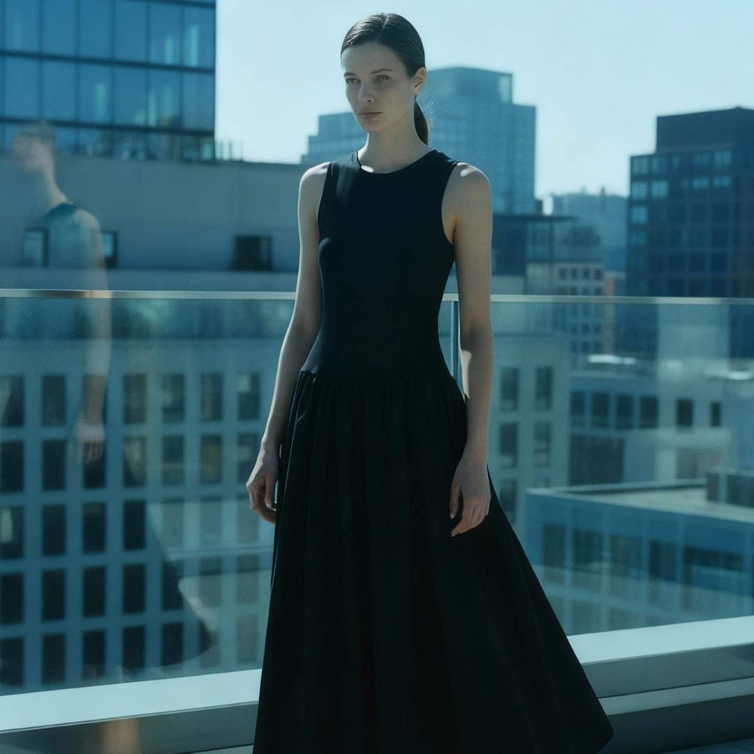 “Finally a luxury dress that doesn’t restrict me. It feels soft, structured, and strong all at once.”